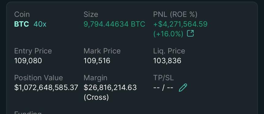 比特币巨鲸 James Wynn 在 Hyperliquid 平台将 40 倍多头仓位扩大至 10.7 亿美元 摘要 詹姆斯·韦恩 (James Wynn) 是一位匿名加密货币交易员,以在链上进行大规模交易而闻名,他利用 40 倍杠杆将其比特币多头仓位扩大至 10.7 亿美元 。 币圈财经笔记报道: 詹姆斯·韦恩 (James Wynn),一位匿名加密货币交易员,以大规模链上交易闻名,近日在去中心化衍生品平台...