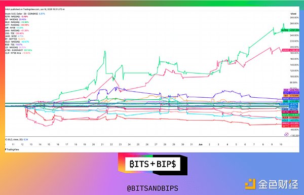 本周图表:比特币 vs 加密金库公司近1个月表现(仅包含持有比特币超1亿美元的公司)
