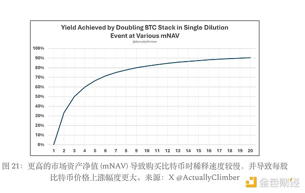 mNAV(净资产倍数):指股票市值与其净资产值的比率。较高的 mNAV 使公司能够溢价发行股票,从而增加其每股比特币持有量。作为参考,MSTR 目前的 mNAV 约为 2.24。