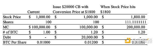 图 12:通过可转换债券转换,每股比特币价格上涨的示例