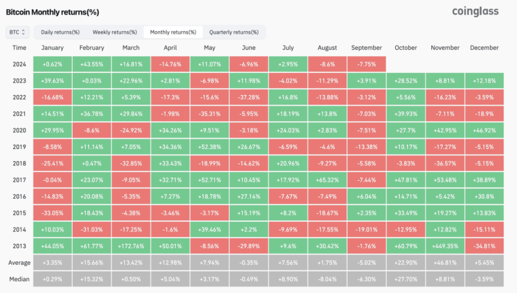 加密市场往往与股票市场类似,都会出现季节性趋势。比如,夏季市场普遍表现惨淡,而在年末以及年初又表现不错。