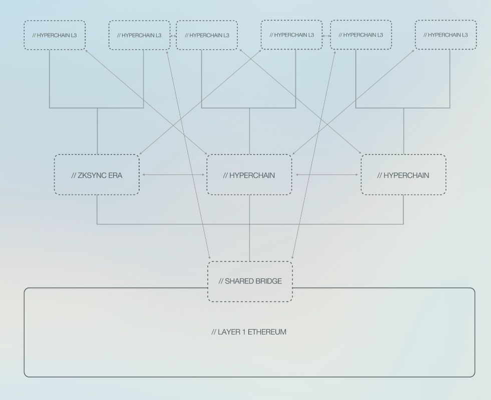 Sophon采用Hyperbridges,这是一种原生的、无信任的通信协议,允许不同区块链之间进行安全和高效的数据传输。通过这种方式,Sophon可以轻松连接并与其他链进行交易,从而扩大流动性池和用户基础。其次,Sophon使用共享桥接(Shared Bridge)技术,通过智能合约验证跨链交易的Merkle证明。这种机制确保了所有原始资产在 Layer 1(以太坊主网)上的安全锁定,实现了统一的流动性流动。
